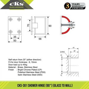 Maximum Frameless Glass Door Dimension For CKS Shower Hinge (CKS-301)