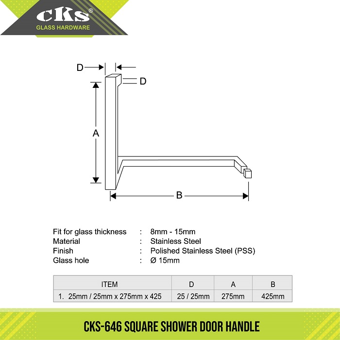 / CKS-646 SQUARE SHOWER DOOR HANDLE
