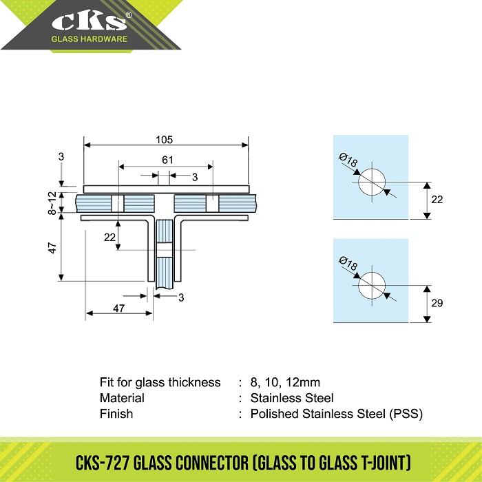 / CKS-727 GLASS CONNECTOR (T-JOINT)