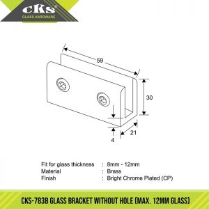 / CKS-783B GLASS BRACKET WITHOUT HOLE (MAX 12MM GLASS)
