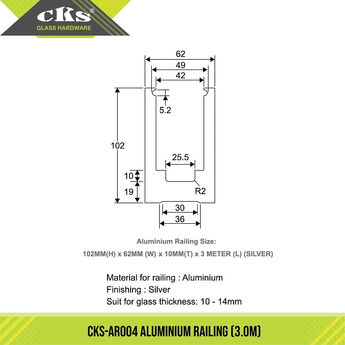 / CKS-AR004 ALUMINIUM RAILING (3.0M)